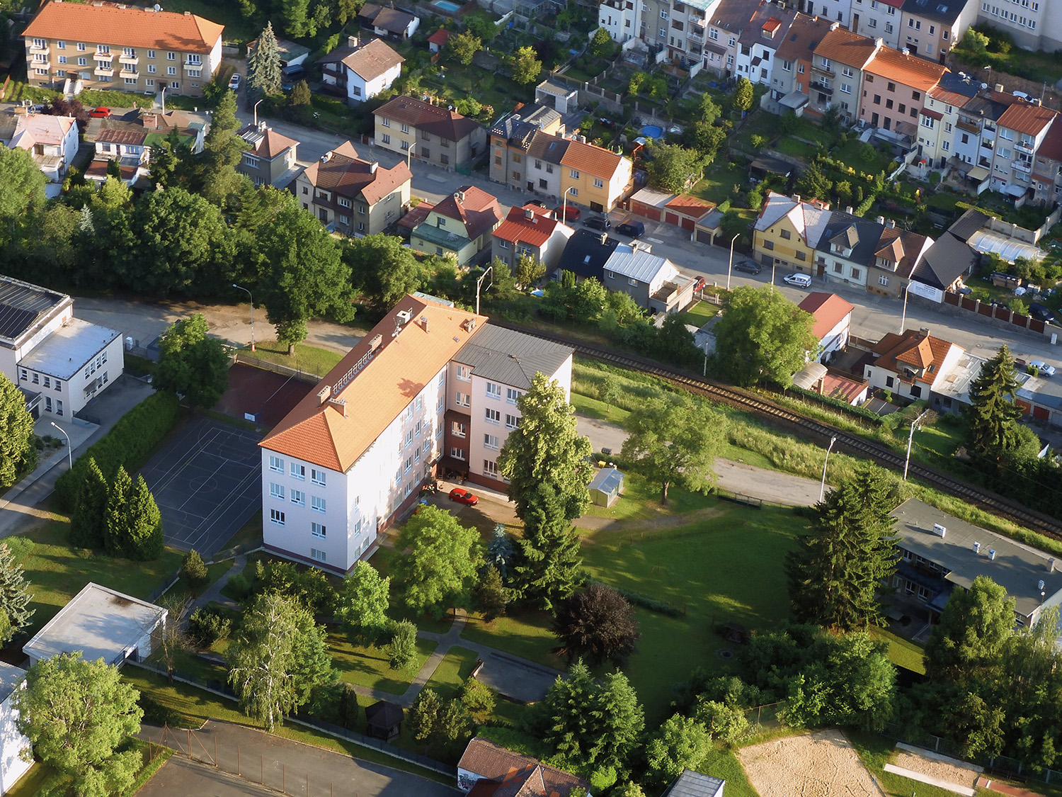 Budova se nachází v tichém a klidném prostředí a její součástí je i velká zahrada, kterou s úspěchem využíváme jak pro výuku, tak pro odpočinek.